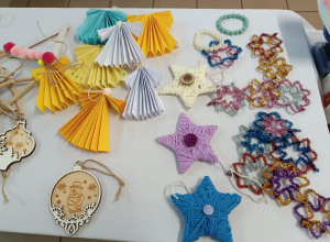 W naszej szkole odbyła się osiedlowa gwizdka, na której można było zakupić własnoręczne robione kartki oraz ozdoby świąteczne zrobione przez uczniów na świetlicy szkolnej. Były to między innymi kolorowe kartki, mini obrazy na sztalugach, choinki z włóczki oraz z płatków kosmetycznych, gwiazdki z kolorowej włóczki i...