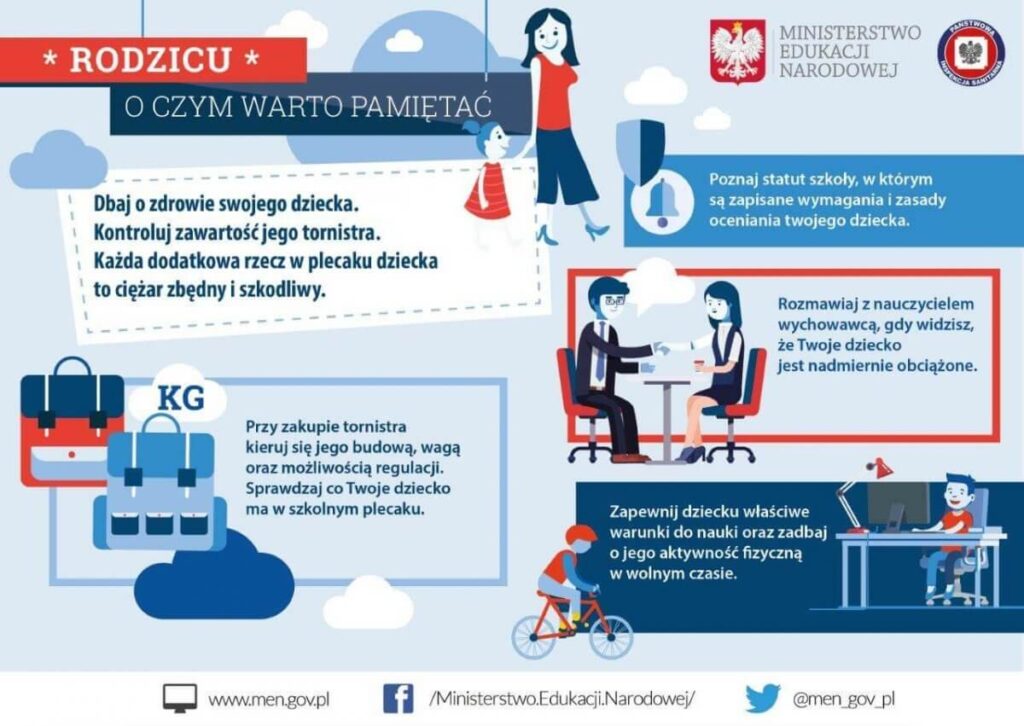 Prosimy o zwrócenie uwagi, na to co dzieci zabierają do szkoły i czy rzeczywiście wszystkie przedmioty w tornistrze dziecka są niezbędne. Dobrym przykładem jest chłopiec z klasy 3, którego plecak po wyjęciu segregatora z kolekcjonerskimi kartami zmniejszył swoją wagę o cały jeden kilogram!