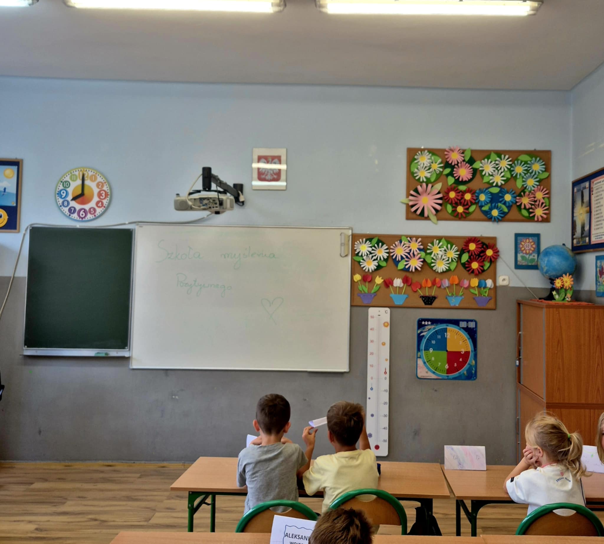 W ramach wrześniowego zadania „Szkoły Pozytywnego Myślenia” Pani Dagmara Surdy-Feliniak poprowadziła zajęcia dla uczniów klasy 1B. Zajęcia poświęcone były podstawowym ćwiczeniom uważności, opracowanym przez holenderską trenerkę Eline Snel. Dzieci poznały bohaterkę krótkich, wyciszających medytacji – żabkę, która potrafi siedzieć spokojnie, nie reagując na bodźce z otoczenia, a jedynie je obserwując. Wraz z nią pierwszaki uczyły się prostych technik oddechowych, pomagających w wyciszeniu i radzeniu sobie w chwilach stresu lub nadmiernego pobudzenia. Ćwiczenia te będą jeszcze wielokrotnie wykorzystywane w naszej codziennej pracy wychowawczej.