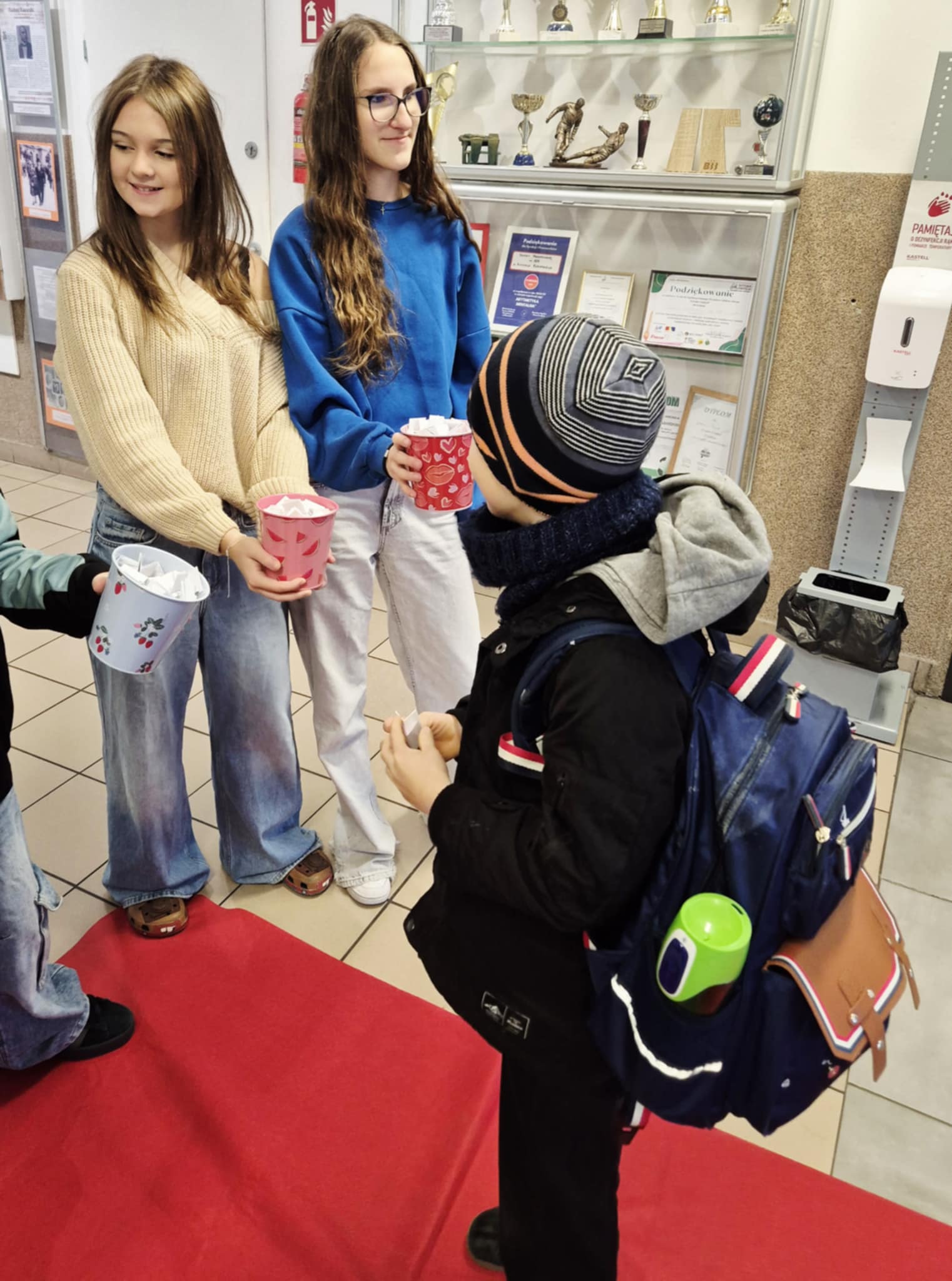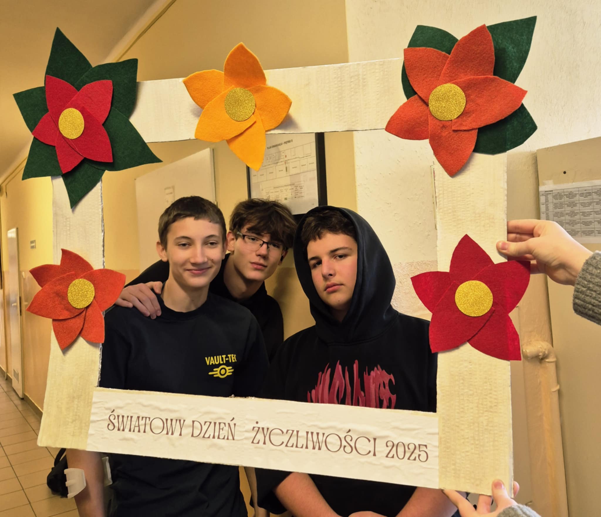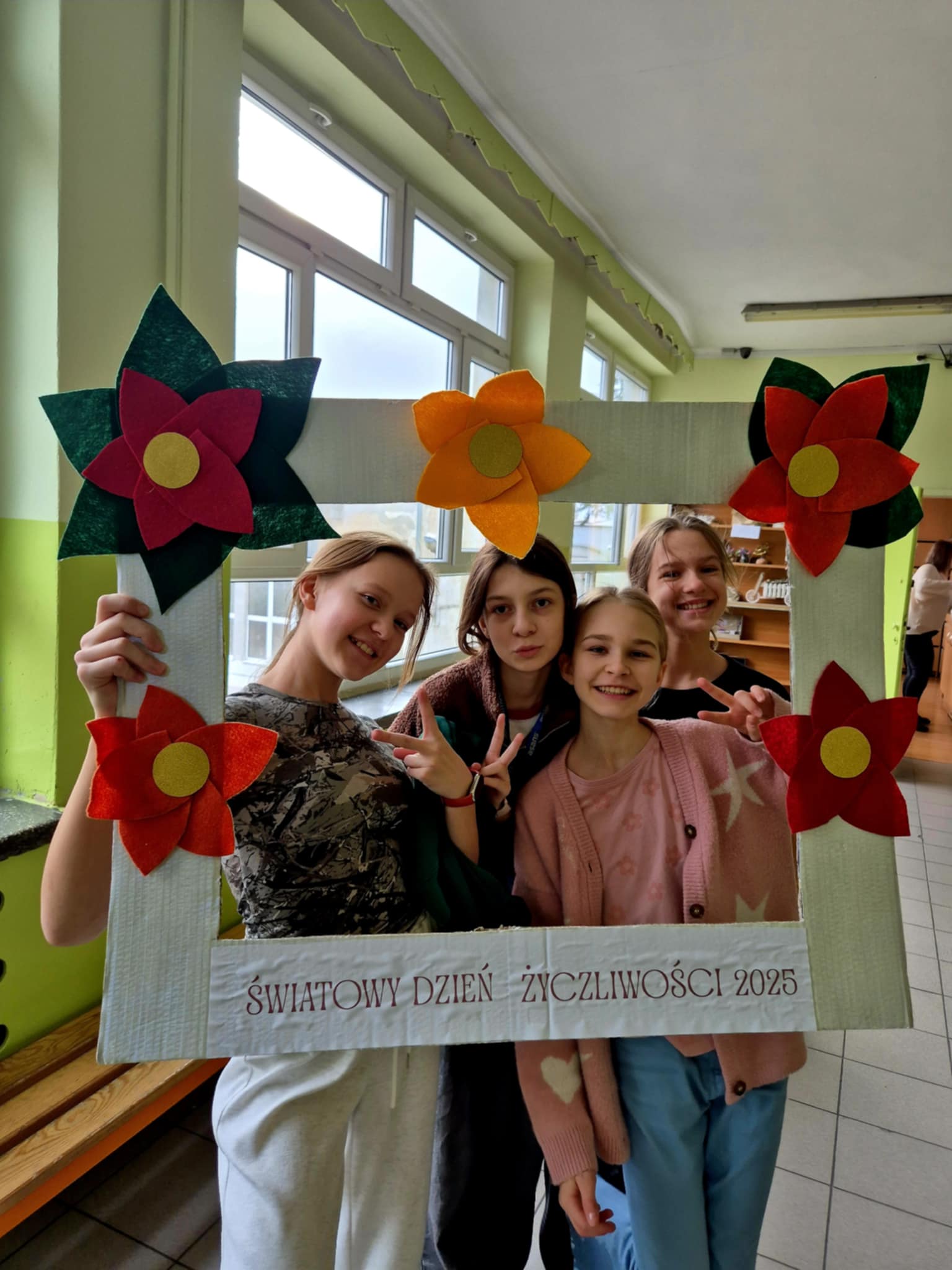 Dzień Życzliwość (21.11) zaczęliśmy od wejścia do szkoły po czerwonym dywanie w takt muzyki. Każdy uczeń czuł się dziś przez to doceniony i wyjątkowy. Następnie dzieci losowały pozytywną sentencje na dobry początek dnia. Na przerwach była również możliwość zrobienia sobie pamiątkowego zdjęcia we wcześniej przygotowanej ramce. Z okazji korzystali również nauczyciele! Mamy nadzieję, że każdy dziś poczuł się wyjątkowo i na długo zapamięta ten dzień!