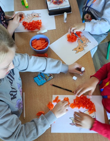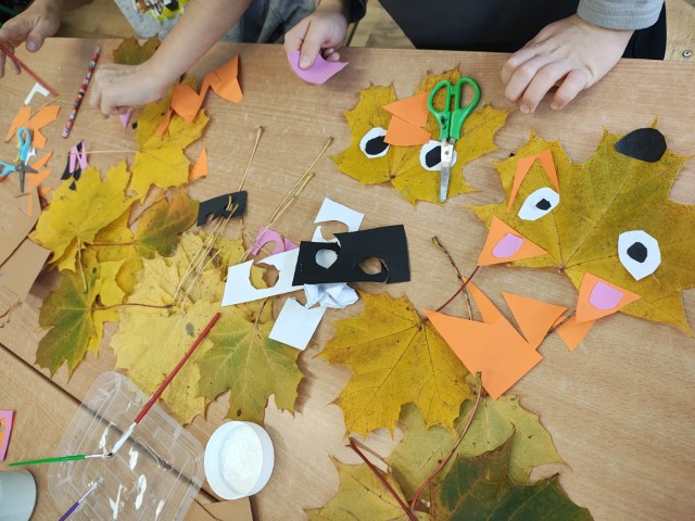 Uczniowie grupy świetlicowej klasy 1a spędzili jesienne dni bardzo aktywnie i twórczo. W czasie zajęć plastycznych prowadzonych przez Panią Karolinę Ramus powstało wiele pięknych prac inspirowanych kolorami i darami jesieni. Dzieci wykorzystywały liście i kasztany tworząc z nich ciekawe kompozycje. Pracowały również z plasteliną, farbami, bibułą i pastelami, rozwijając swoją wyobraźnię i zdolności manualne.
