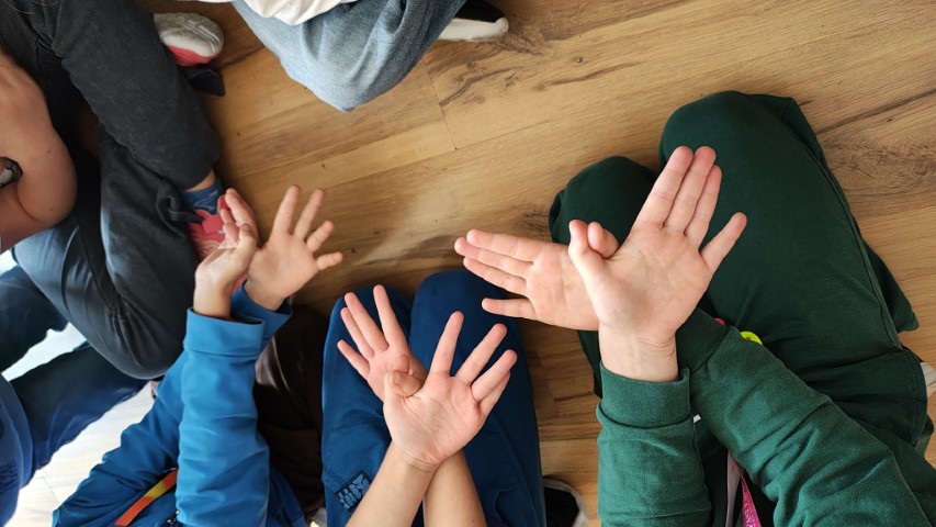 Podczas zajęć dzieci dowiedziały się, że są osoby, które nie słyszą i porozumiewają się w inny sposób – za pomocą języka migowego, czyli gestów i ruchów dłoni. Uczniowie z ciekawością poznali kilka podstawowych znaków, takich jak: „dzień dobry”, „do widzenia”, „proszę”, „przepraszam”, „dziękuję” i „cześć”.