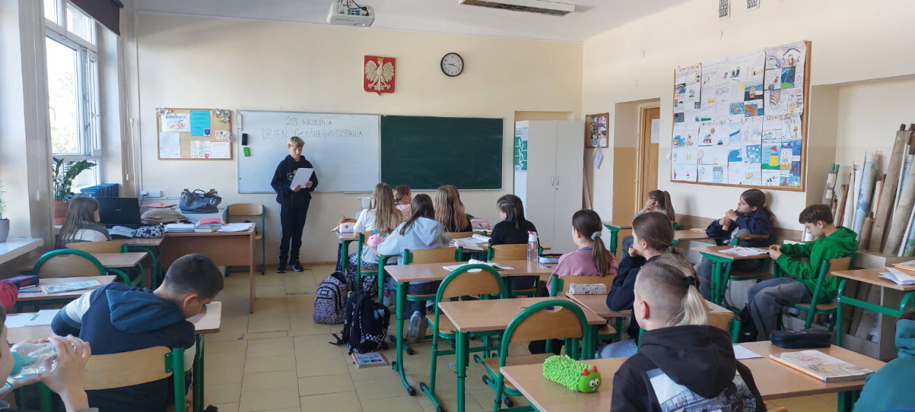 W tym dniu, w naszej szkole wszyscy uczniowie uczestniczyli w akcji głośnego czytania jako słuchacze, bądź jako czytający wybrane teksty przez nauczyciela bibliotekarza oraz nauczycieli polonistów, przy współudziale pozostałych nauczycieli.
