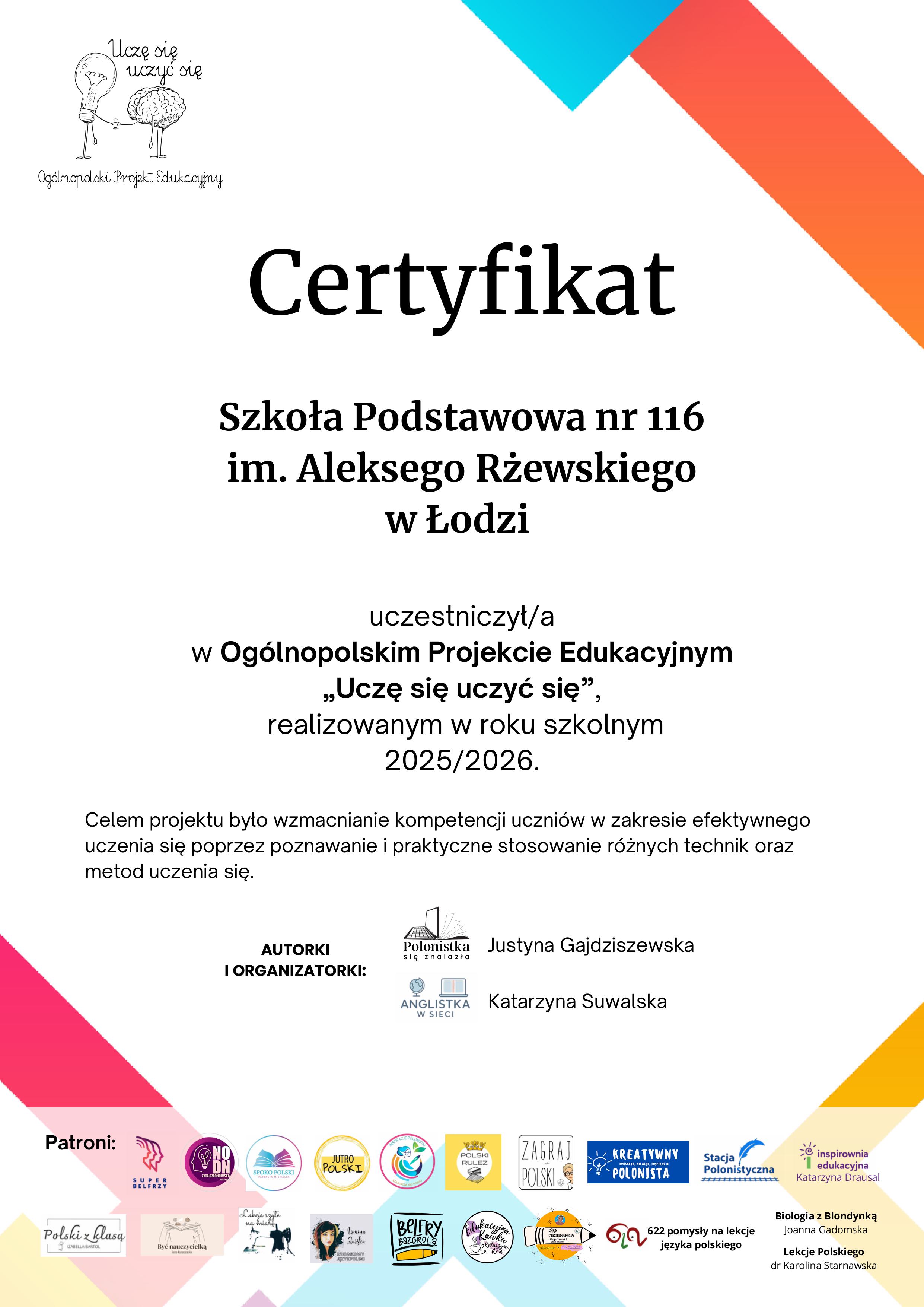 Ogólnopolski projekt edukacyjny „Uczę się uczyć się”.