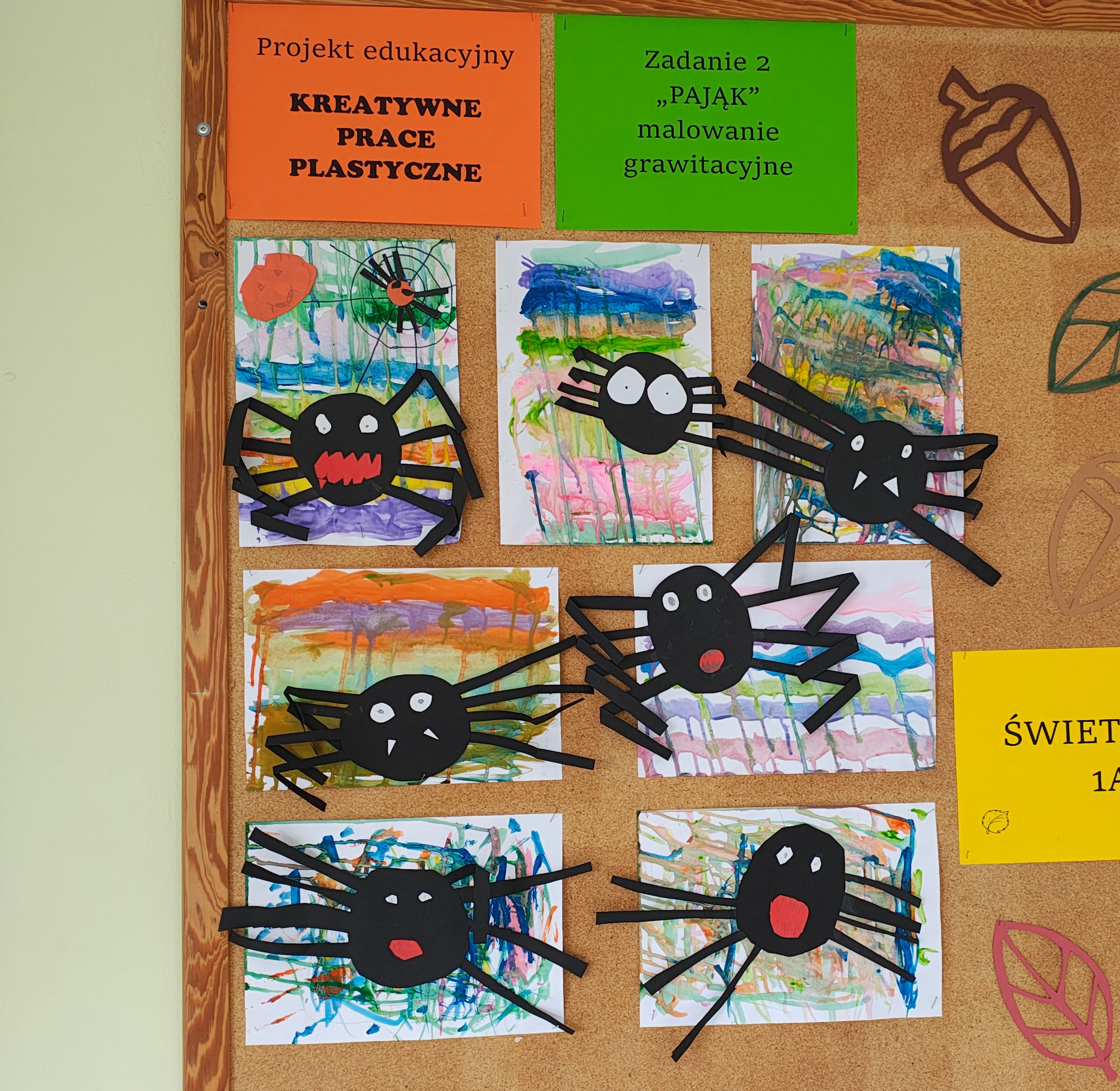 W październiku uczniowie świetlicy 1a pod opieką Pani Karoliny Ramus zrealizowali kolejne zadanie w ramach Międzynarodowego Projektu „Kreatywne Prace Plastyczne”. Tematem zadania drugiego był „Pająk – malowanie grawitacyjne”.