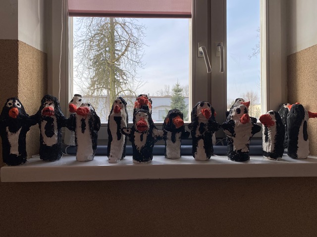 Uczniowie klasy 2c z dużym zainteresowaniem omawiali lekturę „Zaczarowana zagroda”. Historia o pingwinach i pracy polarników bardzo spodobała się dzieciom. Aby jeszcze lepiej zapamiętać przygody bohaterów książki, uczniowie wykonali własne pingwiny z butelek oraz bandaża gipsowego. Podczas pracy plastycznej dzieci wykazały się ogromną kreatywnością, starannością i zaangażowaniem. Powstało wiele pięknych i pomysłowych prac. Zajęcia sprawiły uczniom dużo radości, a połączenie czytania lektury z działaniem artystycznym okazało się świetną zabawą i ciekawą formą utrwalenia treści książki.
