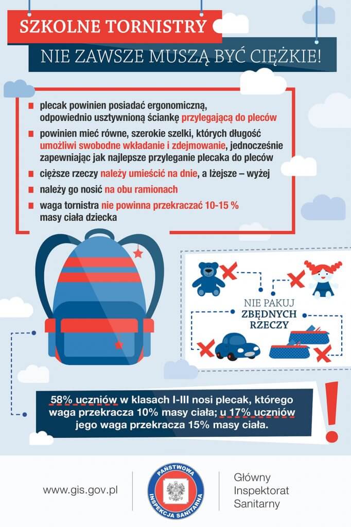 Tornistry szkolne - zalecenia Głównego Inspektora Sanitarnego.