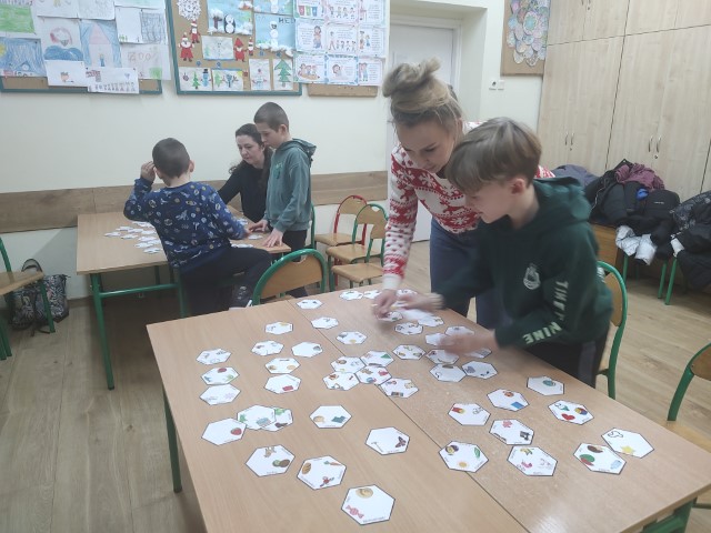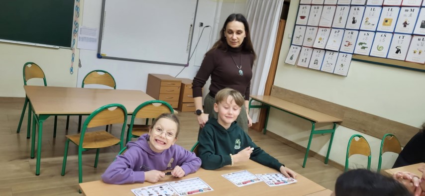 8 grudnia w naszej szkole odbyły się warsztaty dla rodziców uczniów klas pierwszych, w których uczestniczyły również dzieci. Podczas spotkania rodzice wraz z dziećmi brali udział w grach polonistycznych, mających na celu wspieranie umiejętności analizy i syntezy głoskowej oraz nauki czytania i pisania.