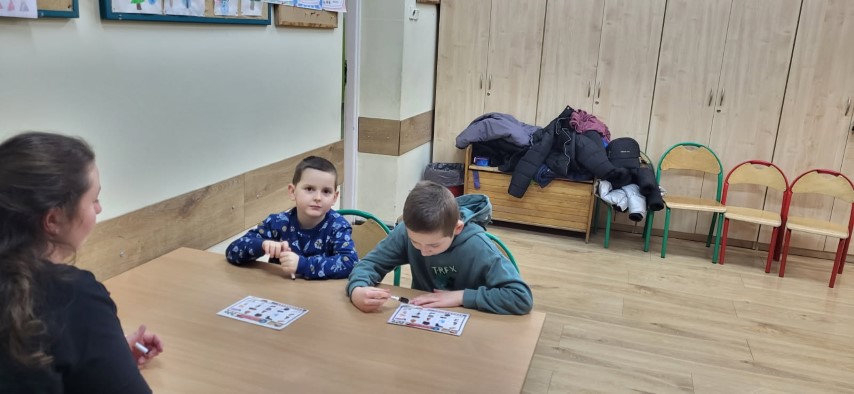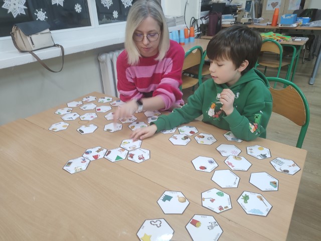 Dzieci grały w proste gry edukacyjne własnoręcznie przygotowane przez nauczycielki, dzięki czemu rodzice mogli zobaczyć, jak niewielkim kosztem można przygotować ciekawe zabawy, które nie tylko uczą, ale także bawią. Warsztaty były okazją do poznania praktycznych sposobów wspierania rozwoju dzieci oraz do wspólnej, aktywnej pracy.