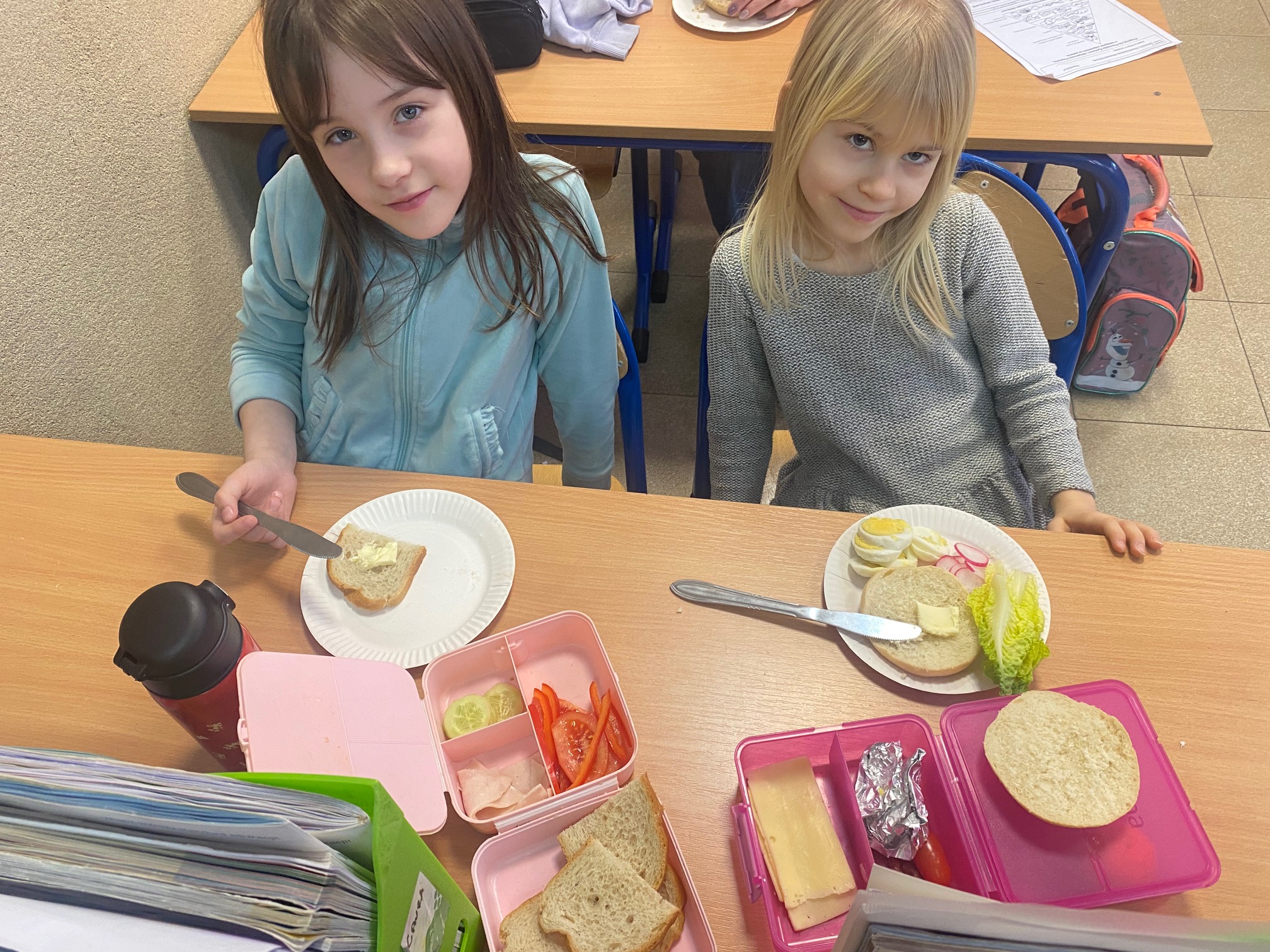 Wiosna zawitała do klasy 1C. Pierwszaki wraz z Panią Anetką z chęcią brali udział w różnych wiosennych aktywnościach. Wspólnie stworzyli dużą postać Pani Wiosny, ozdabiając ją kolorowymi kwiatami i motylkami. Nasza praca dodała wiosennego klimatu w klasie! Dodatkowo każdy uczeń zasadził swój hiacynt- rośliny pięknie zakwitły i ozdobiły naszą klasę pięknymi kolorami i zapachem. Nie zapomnieliśmy o skrzydlatych przyjaciołach! Zawiesiliśmy karmniki i rozsypaliśmy ziarna, aby pomóc ptakom, które nadal szukają pożywienia. Nie tylko zadbaliśmy o ptaki, ale też o własne brzuszki. Przygotowaliśmy zdrowe i kolorowe kanapki z warzywami. Uczyliśmy się, jak ważne jest zdrowe jedzenie i cieszyliśmy się smakiem wiosennych składników. W naszej klasie pierwszaki uczą się przez zabawę, odkrywając świat w kreatywny i radosny sposób!