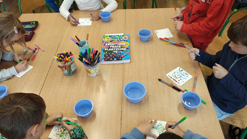 Dzięki temu zadaniu uczniowie przekonali się, że sztuka może powstawać w prosty, a jednocześnie niezwykle efektowny sposób.