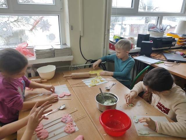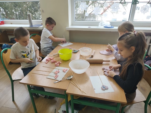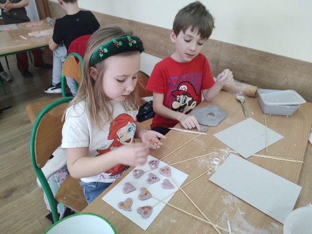 Z okazji Dnia Babci i Dziadka uczniowie klasy 1b z ogromnym zaangażowaniem uczestniczyli w zajęciach plastycznych. Podczas lekcji samodzielnie przygotowali masę solną, z której lepili piękne, kolorowe serduszka. Każda praca była wyjątkowa i wykonana z wielką starannością oraz sercem. Dzieci włożyły w swoje upominki dużo ciepła i wdzięczności, chcąc w ten sposób wyrazić miłość oraz podziękowanie swoim Babciom i Dziadkom. To były bardzo twórcze i pełne radości zajęcia.